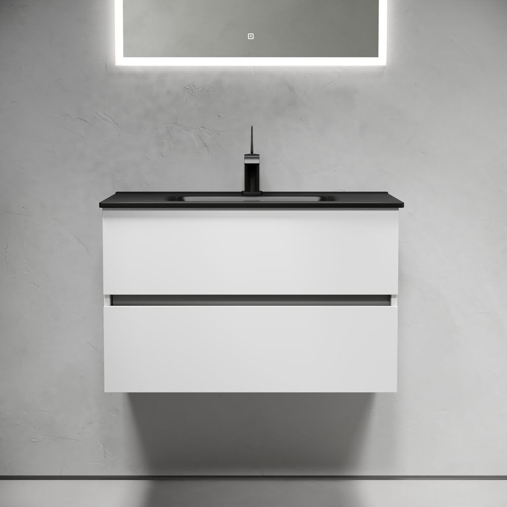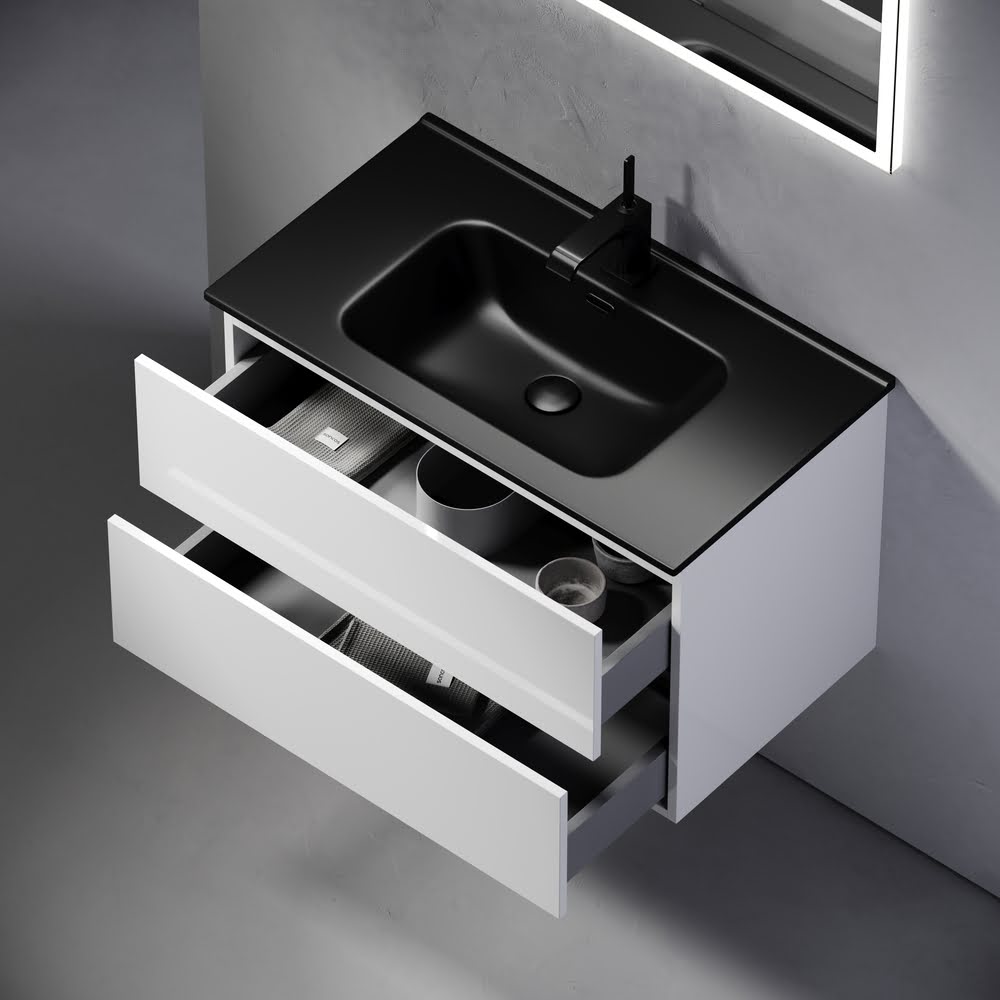 Тумба 80 см Urban ПОДВЕСНАЯ Sancos с умывальником CN7005MB: — c двумя ящиками оснащенными доводчиками скрытого монтажа с системой Soft close (плавного закрывания), c ручкой Gola (специальной скрытой ручкой, которая прикрепляется непосредственно на торцевой части фасада, но за которую можно держаться, при открытии и закрытии шкафчиков) по всей длине тумбы, фасад — белый глянец КРАСКА!!! Материал — МДФ, корпус — ЛДСП. Комплектуется умывальником — CN7005MB. Размеры умывальника: ширина — 810 мм, глубина — 465 мм, высота — 180 мм. Монтаж тумбы — подвесной. ВНИМАНИЕ: Тумба 80 см Urban ПОДВЕСНАЯ Sancos ТАКЖЕ СОВМЕСТИМА с умывальниками — CN7005 / CN7012 / CN7012MB / CN7012wx / CN7012MBwx