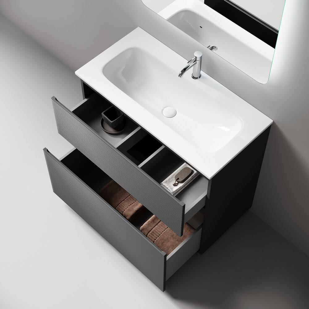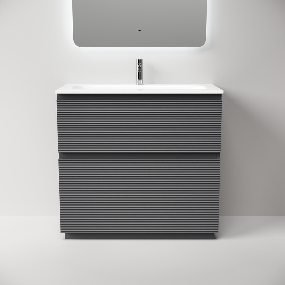Тумба 90 см Folk Floor Grey soft Напольная Sancos с умывальником CN7019: тумба подвесная с рельефным фасадом SANCOS Folk размером 890 х 445 х 850 мм, c двумя ящиками оснащенными доводчиками скрытого монтажа с системой плавного закрывания Soft close, цвет — Grey soft!!! Корпус и фасад тумбы изготовлен из влагостойкого МДФ, покрытого матовой плёнкой ПВХ. Комплектуется умывальником — CN7019. Размеры умывальника: ширина — 910 мм, глубина — 457 мм, высота — 137 мм. Монтаж тумбы — напольный. Оснащение — комплект доводчиков, комплект креплений, инструкция. !!!ВНИМАНИЕ: Тумба 90 см Folk Floor Grey soft Напольная Sancos ТАКЖЕ СОВМЕСТИМА с умывальниками — CN7002 / CN7002MB / CN7019Wx / CN7019MB / CN7019MBWx