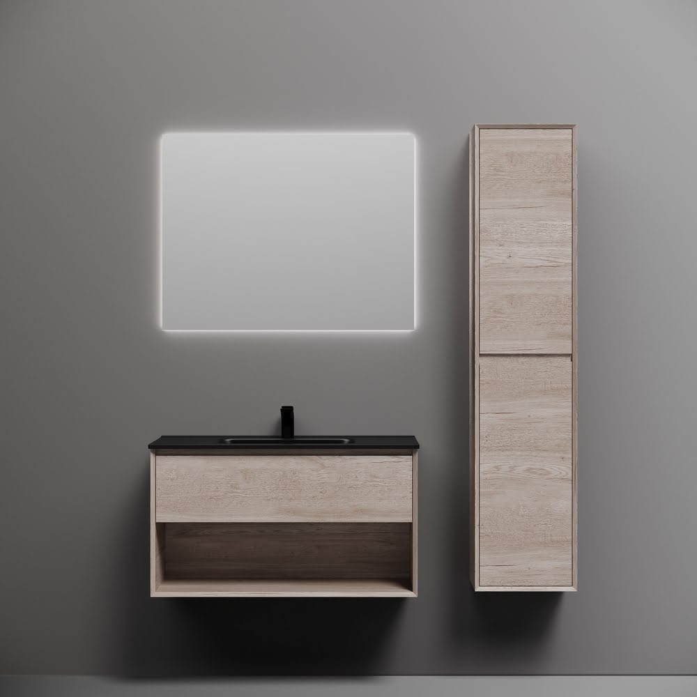 Тумба 90 см Marmi 1.0 Дуб галифакс натуральный ПОДВЕСНАЯ Sancos с умывальником CN7002MB