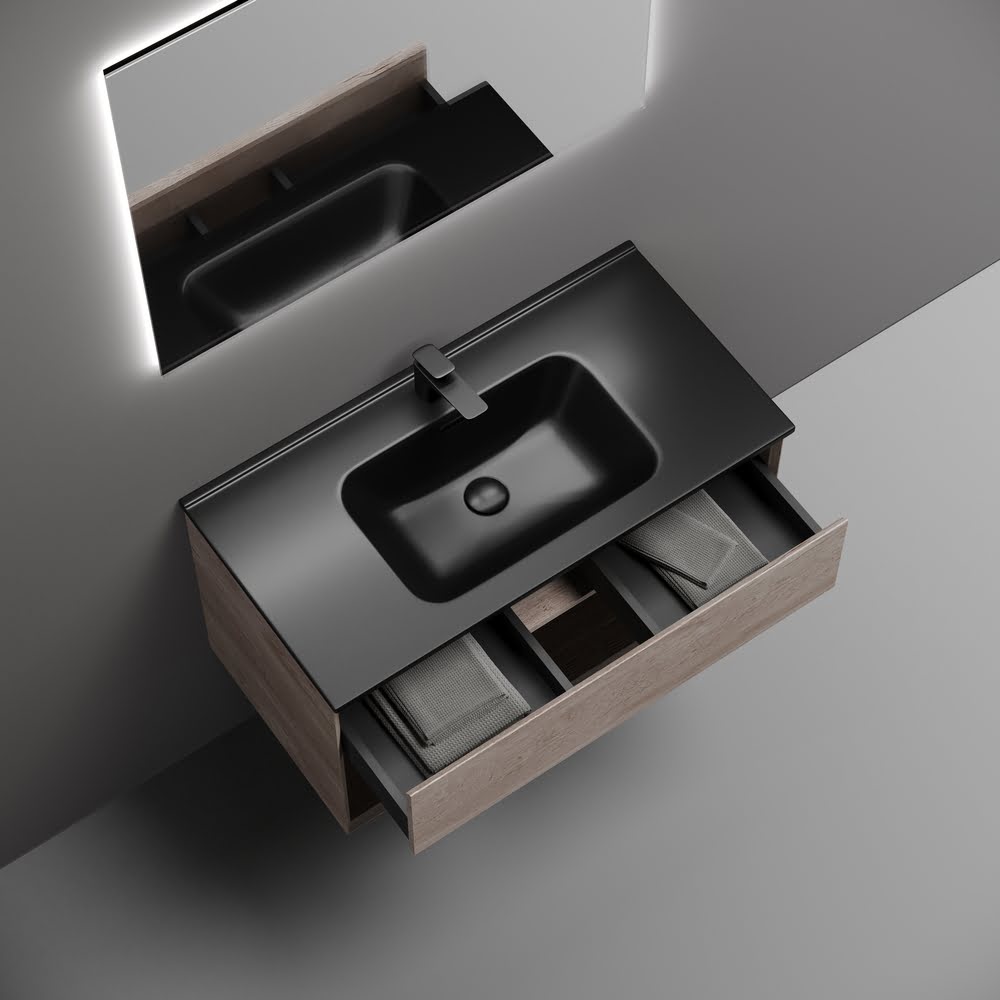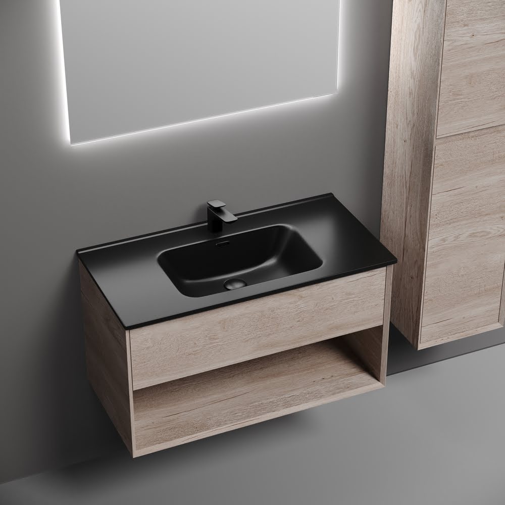 Тумба 90 см Marmi 1.0 Дуб галифакс натуральный ПОДВЕСНАЯ Sancos с умывальником CN7002MB — тумба подвесная SANCOS Marmi 1.0 размером 890 х 445 х 520 мм c одним ящиком оснащенным доводчиками скрытого монтажа с системой Soft close (плавного закрывания) и открытой нишей, c фрезерованной ручкой по всей длине фасада, цвет — Дуб галифакс натуральный!!! Корпус и фасад тумбы изготовлен из ЛДСП, поверхность — матовая!!! Комплектуется умывальником CN7002MB. Размеры умывальника: ширина — 910 мм, глубина — 465 мм, высота — 180 мм. Монтаж тумбы — подвесной. Оснащение — комплект доводчиков, комплект креплений, инструкция. !!!ВНИМАНИЕ: Тумба 90 см Marmi 1.0 Дуб галифакс натуральный ПОДВЕСНАЯ Sancos ТАКЖЕ СОВМЕСТИМА с умывальниками — CN7002 / CN7019 / CN7019wx / CN7019MB / CN7019MBwx