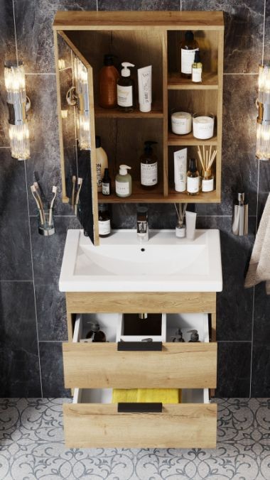 Тумба 60 см ЛЕГРАН Подвесная Дуб галифакс с умывальником