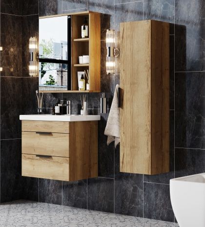Тумба 60 см ЛЕГРАН Подвесная Дуб галифакс с умывальником: это сочетание насыщенного древесного декора и благородства металла: роскошная текстура и натуральный цвет дуба дают теплоту, а матовые металлические ручки добавляют урбанизма и солидности. Тумба имеет два ящика, снабженные системой плавного закрывания. Нижний предназначен для больших предметов, а верхний, имеющий удобную систему организации пространства, — для мелких аксессуаров. Тумба ЛЕГРАН 60 см выполнена из ЛДСП, устойчивой к механическим воздействиям, перепадам температур и высокой влажности, при этом она надежно крепится к стене и не занимает место на полу, не создавая при этом сложностей в уборке помещения. Ручки и подвесы для крепления тумбы — в комплекте. За мебелью, изготовленной из такого материала, легко ухаживать — достаточно протереть фасады слегка влажной губкой. Тумба поставляется в собранном виде в коробке из прочного картона. Способ установки — подвесной. Тумба ЛЕГРАН 60 см комплектуется умывальником Фостер-60 (Kirovit). Размеры умывальника: ширина — 608 мм, глубина — 405 мм.