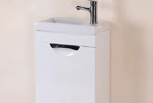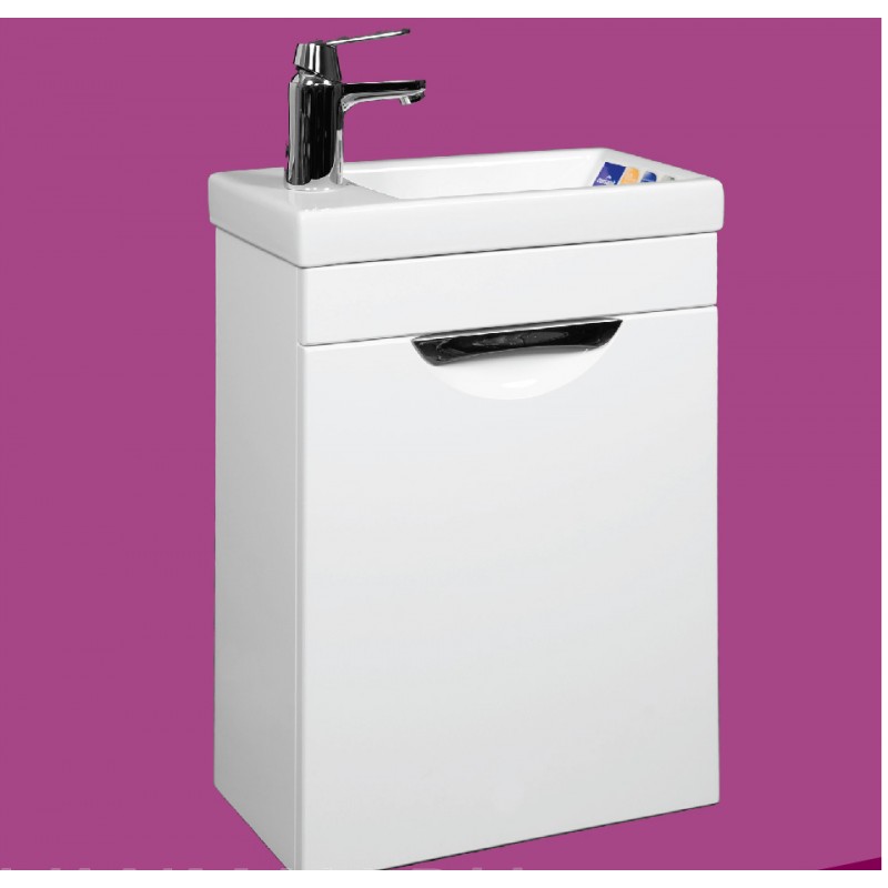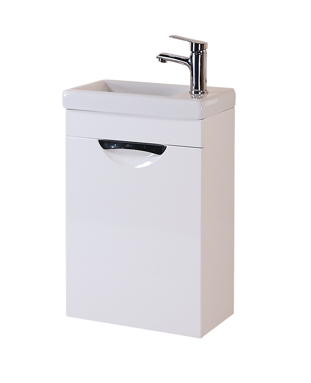 Отличный вариант для небольшой ванной комнаты Тумба подвесная КОМО 40 см. Тумба не ставится на пол, а навешивается на стену. Наполнение — однодверный ящик с полочкой, петли справа. Фасад выполнен из фрезерованного, шлифованного влагостойкого МДФ, покрытого глянцевой пленкой ПВХ KRONOSPAN (Германия). Корпус — из влагостойкого ЛДСП (EGGER) Комплектуется Тумба умывальником Миранда-40 (Santek). Дверца оснащена петлями с системой плавного довода (BOYARD).
