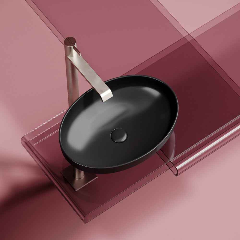 Умывальник 502х363х145мм чаша Element CeramicaNova накладная овальная CN6056MB/Италия: современная дизайнерская раковина с безупречностью линий и лаконичностью форм. Санфарфор черного матового цвета, из которого сделаны умывальники CeramicaNova/Италия, отличается практичностью, повышенной прочностью, стойкостью к царапинам, экологичны и совершенно безвредны. Поставляется Умывальник CN6056MB/Италия в коробке из прочного картона. Способ установки — накладной к столешнице. БЕЗ ПЕРЕЛИВА! Рекомендуем: донный клапан с системой «Клик-Клак» CeramicaNova CN2000MB Черный Матовый
