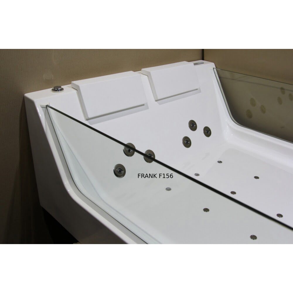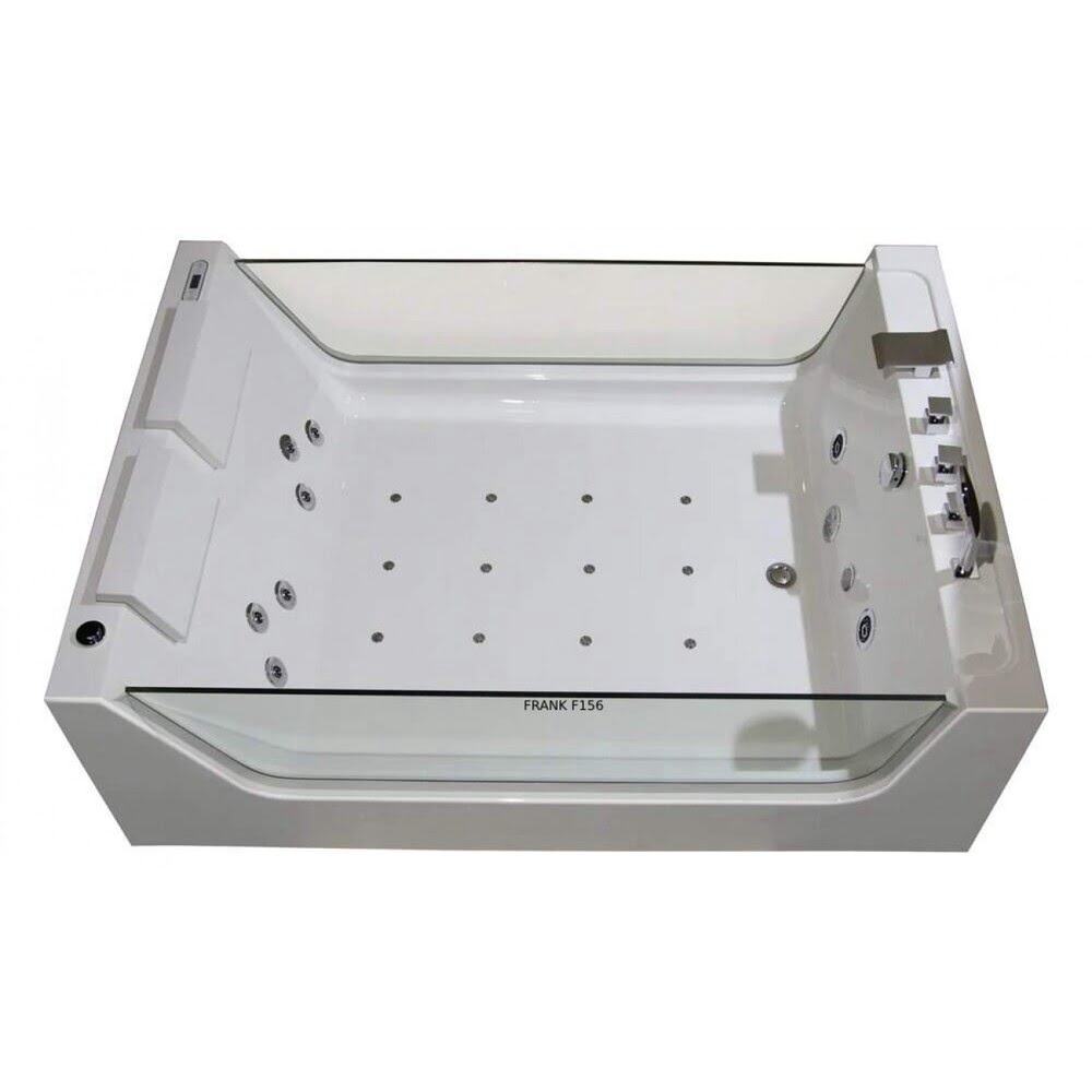 Ванна 170x120x58см акриловая гидромассажная Frank F156 отдельностоящая/Германия — изготовлена из 100% литьевого акрила с четырёхслойной армировкой с антибактериальным покрытием! Самыми долговечными, но и самыми дорогими в производстве являются ванны из литьевого акрила. Достоинством является высокая плотность материала, приятная гладкость поверхности, отсутствие микропор, где могут задержаться грязь и бактерии. В случае появления царапин на поверхности, их значительно легче отремонтировать или просто зашлифовать. Ванна с гидромассажем Frank F156 — прямоугольная!!! Все гидромассажные ванны Frank поставляются в максимальной комплектации и имеют множества функций. Ванна с гидромассажем Frank F156 отдельностоящая с аэромассажем, гидромассажем, турбомассажем. В ногах установлен многоцветный подводный фонарь. Также ванна снабжена системой дезинфекции. Форсунки расположены в ванне с учётом эргономики тела и способствуют максимальному охвату поверхности тела при работе аэро- и гидромассажных двигателей. Вся ванна сделана из литьевого акрила. Стоит система слива остатков воды из форсунок. Используется высокопрочное стекло 10 мм.с антибактериальным покрытием без металлической окантовки, что придаёт ванне современный дизайн. Уникальный дизайн ванны с прозрачными стеклянными боковыми стенками. !!!Идеально подходит для совместных водных процедур с любимым человеком!!!