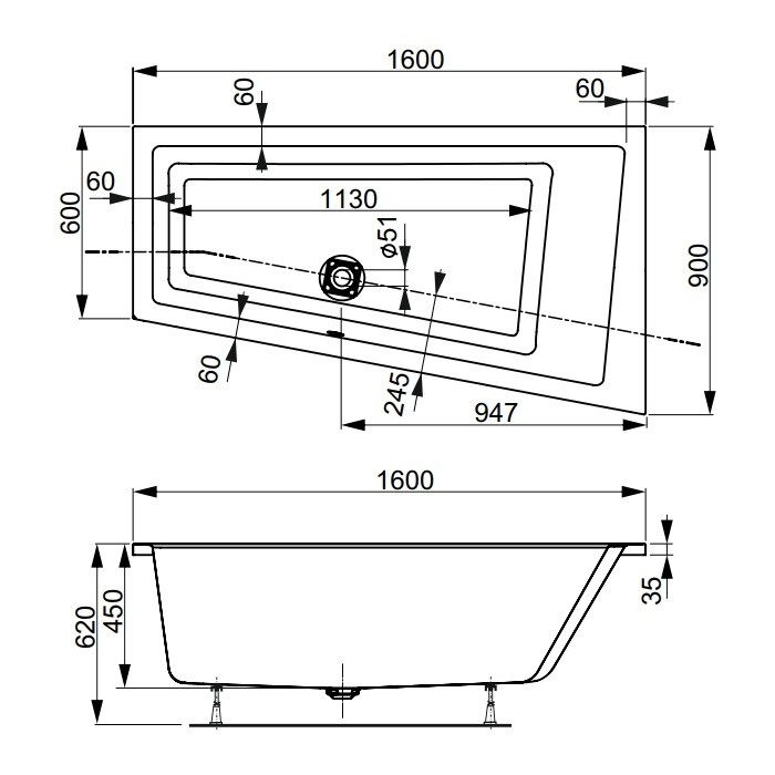 Ванна 160×90 см Cavallo offset 160R VAGNERPLAST/Чехия была специально разработана для небольших ванных комнат для того, чтобы максимизировать использование свободного пространства